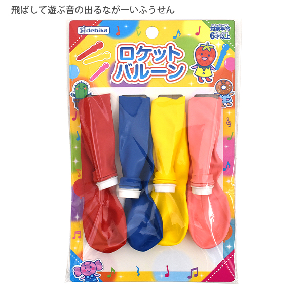デビカ ロケットバルーン 113423 4個入り 飛ばして遊ぶ 長〜い風船 約90cm 風船 空気入れ不要 パーティー 飾り 運動会 夏祭り 風船 おもちゃ キッズ 子ども遊び 室内遊び 日本製